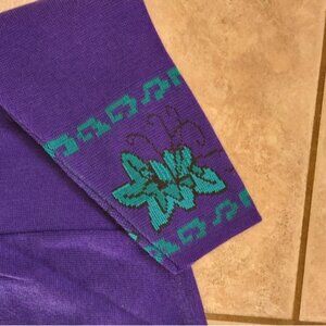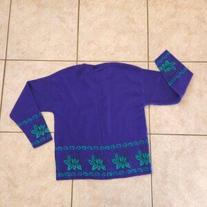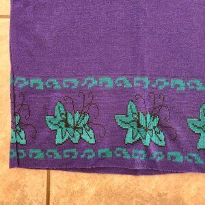 Vintage purple sweater with green leaf pattern. Probably 1990s but could be 1980s.