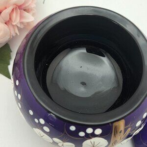 This vintage purple lacquered trinket box is exquisitely hand-painted with a delicate cherry blossom pattern. The round shape and small size make it an ideal keepsake for all occasions, while the Asian style and art theme celebrate the beauty of traditional aesthetics.