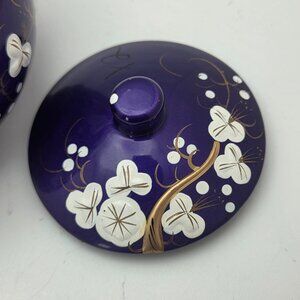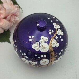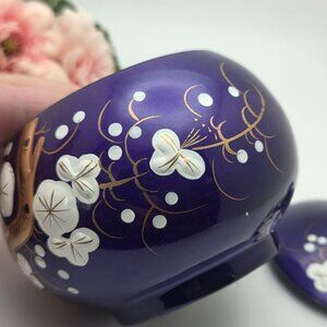 Vintage Purple Lacquered Trinket Box Decor Hand Painted Cherry Blossoms With Lid
