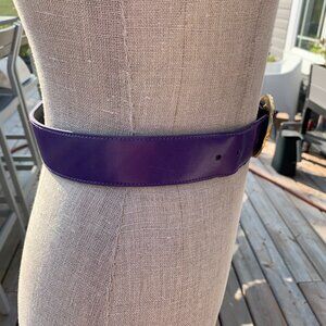 Vintage Purple Leather Statement Gold Buckle Retro 80s 90s Glam Waist Belt