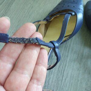 They are in fairly good vintage condition with expected wear from use and age. Please inspect the photos for details. The elastic on the slingbacks is worn.