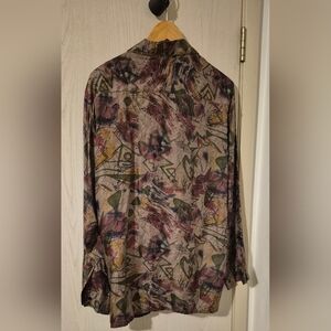 Vintage Purple and Green Silk Dress Shirt with Long Sleeves