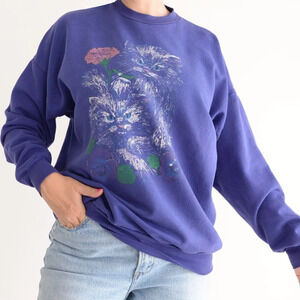 Vintage Purple with Cats and Flowers Crewneck Sweater
