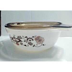 Vintage Pyrex England Brown Floral Vine Round Casserole Dish with Lid