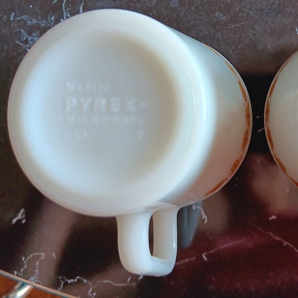 One mug says "No. 1410 PYREX Microwave U.S.A. 6"