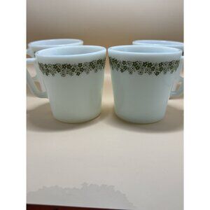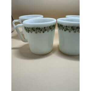 Vintage Pyrex Green Crazy Daisy Spring Blossom Coffee Cup Mugs D-Handle SET OF 4