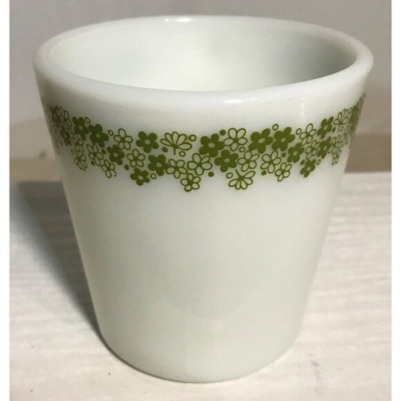 Vintage Pyrex Milk Glass Coffee Mugs Crazy Daisy Green Floral Design - Set Of 5