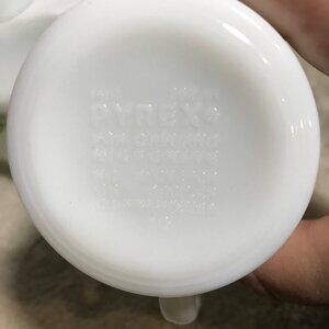 This set of five vintage Pyrex mugs is crafted from durable milk glass, featuring a charming green floral design. Ideal for both oven and microwave use, these mugs blend functionality with timeless style, making them a valuable addition to any kitchen collection.