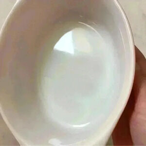This vintage Pyrex Old Orchard casserole dish is in good preowned condition. The interior glaze is still shiny, but there is some paint wear on the exterior. It would still display well. This dish does not include a lid.
