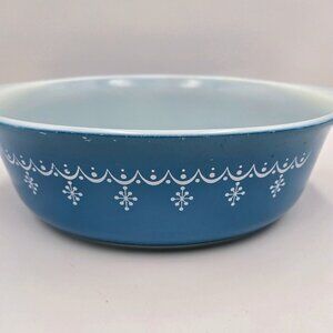 Vintage Pyrex Snowflake Garland Oval Casserole Dish 043 No Lid 1 ½ Qt. Blue Whit