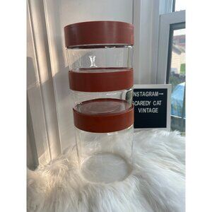 Vintage Pyrex glass and orange plastic kitchen canisters jars containers