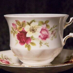 Vintage QUEEN ANNE English Bone China Multi Floral Cup and Saucer Patter…