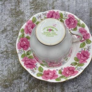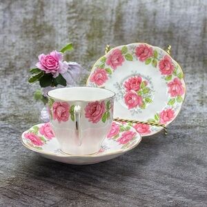 Queen Anne China, a beloved brand established in the early 20th century, was known for its intricate floral designs and high-quality bone china. This stunning “Lady Alexander Rose” pattern is a perfect example of their artistry, making it a cherished collectible for tea lovers and vintage enthusiasts alike.
