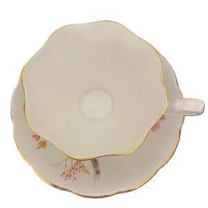 Vintage Queen Anne Bird in Cherry Blossom Tree Fine Bone China Cup Saucer Set