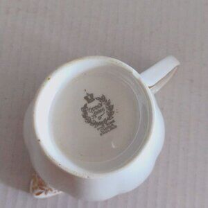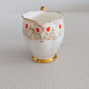 Vintage Queen Anne Bone China Creamer Gold Trim Small Red Tulips Border