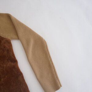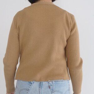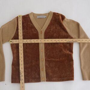 Vintage Quick Reflex Tan Brown Knit Velvet-Like Button Up Cardigan Sweater M