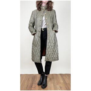 Discover timeless elegance with this vintage April Cornell quilted long barn chore coat, offering both classic style and practical warmth for your English prep inspired wardrobe. Its beautifully preserved condition had some minor wear consistent with age. The iconic silhouette make it a sophisticated and versatile addition to any wardrobe