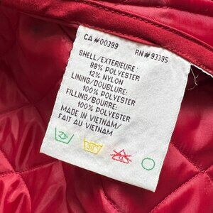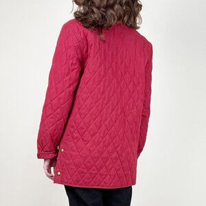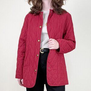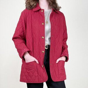 This charming vintage quilted jacket in a rich red hue offers timeless style, featuring classic diamond quilting & prominent brass-toned snap closures for a touch of elegance. Its versatile design makes it a perfect layering piece for transitional weather, adding a pop of color to any ensemble. Ideal for those seeking classic aesthetics without sacrificing comfort