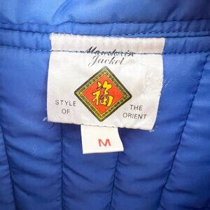 Features: Long sleeves, mandrin collar, side pockets, toggle closure, piping, quilted with a slight puff