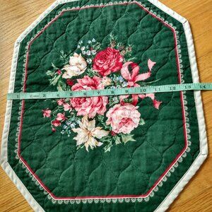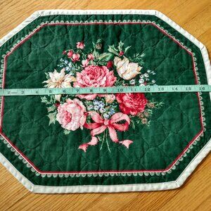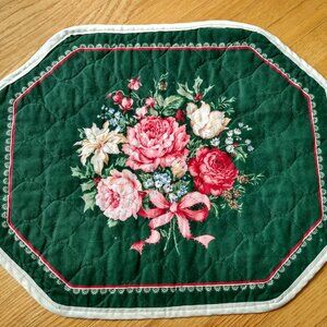 Set of 5 Vintage Quilted Placemats - Pink Roses with Green Background
