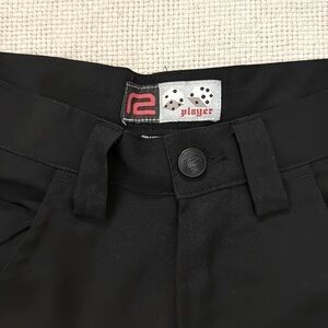 Preowned condition - skid mark in front left knee, was previously hemmed/folded, R2 logo above pocket a bit damaged see photos