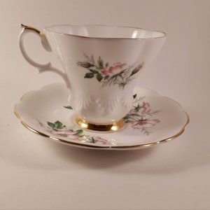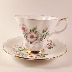 Description: Pretty Pretty Alberta wild rose design by Royal Albert, bone china teacup and saucer.