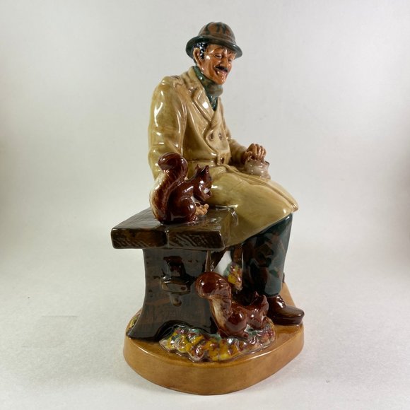 Vintage RARE Royal Doulton HN 2485 Lunchtime Man on Bench feeding Red Squirrels