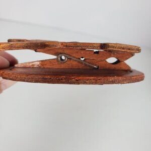 Made of warm-toned wood with fine carved detail, this charming piece includes dual magnets on the back and a built-in wooden clothespin-style clip for easy display. The back still bears its original Made in Canada / Fabriqué au Canada sticker — a delightful nod to its heritage.