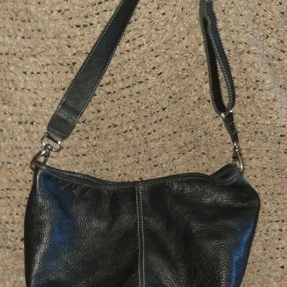 Vintage ROOTS CANADA-Black Pebbled Leather-Bucket Bag-Crossbody Hobo-Near Mint