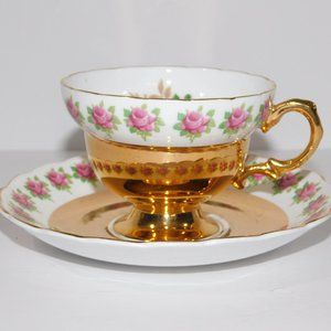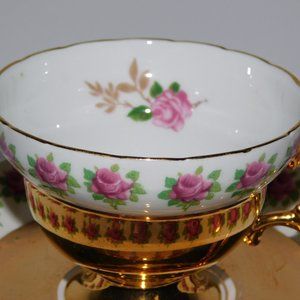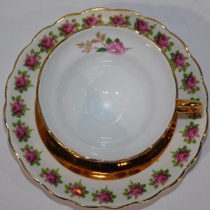 Vintage ROSINA England Bone China Pink Rose Gold Tea cup & Saucer