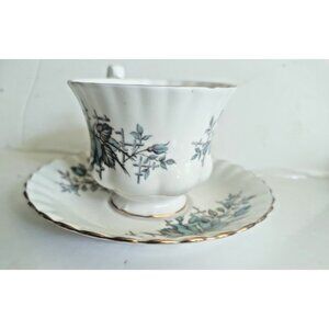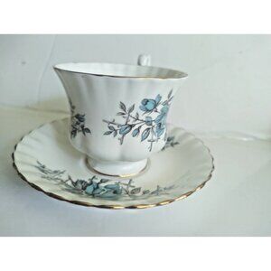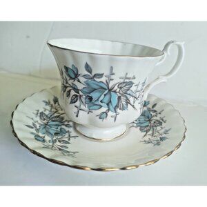 Vintage ROYAL ALBERT BLUE ROSE TRELLIS Tea Cup & Saucer Set
