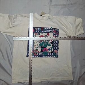 Vintage R&R White Short Sleeve T Shirt with Floral Design Woman's Large