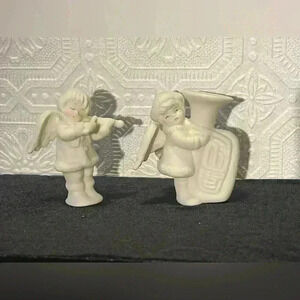 2 Russ Little Miracles Porcelain Angel Figurines Musicians Unfortunately no box.