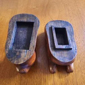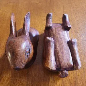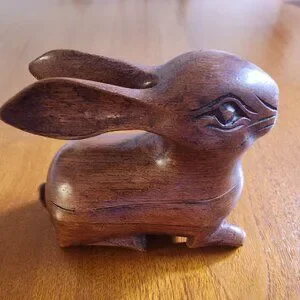 This vintage hand-carved rabbit is both decorative and functional. It contains a small storage compartment suitable for trinkets.