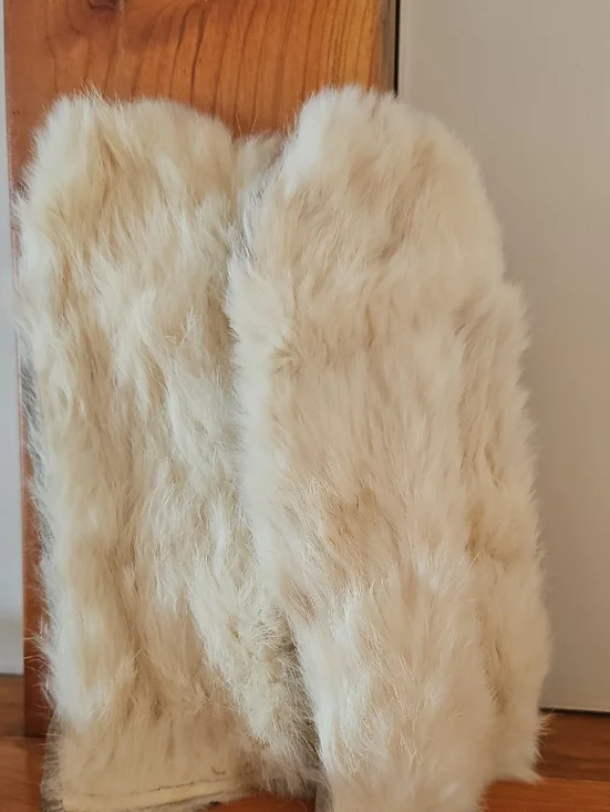 vintage cream rabbit fur mittens