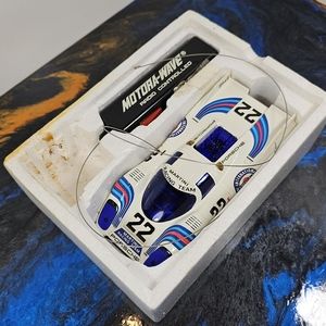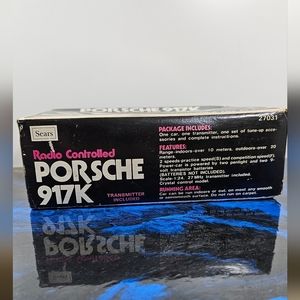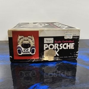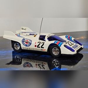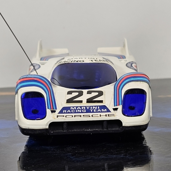 This late 70s early 80s, Vintage Sears Martini Racing Team Porsche 917 RC Race Car is tested and fully operational. comes with original box, car, and remote. unfortunately, the tune-up accessories and instructions are no longer with it. box and Styrofoam have slight damage although damage is to packaging only and does not affect the contents.