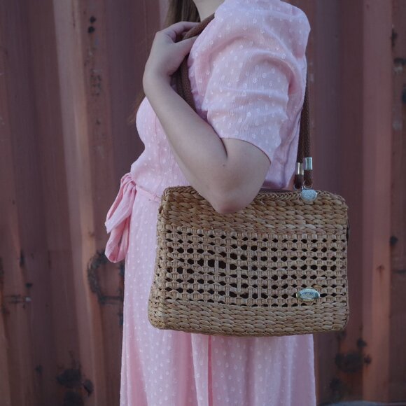 Vintage ladies raffia handbag ,in good shape .By Creazionl Alma made in Italy. Size is 10 by 13 wide .Beautiful cottage look great for farmer markets or beach,