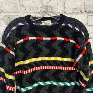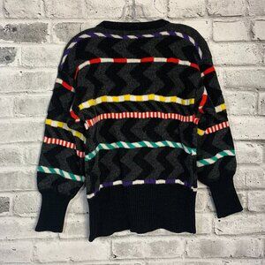 Vintage Rainbow Colourful Stripped Balloon Sleeve Crewneck Sweater