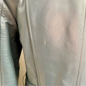 Vintage Rajac Leathers Penny Lane Fur Trim Leather Coat Longline Grey Size Small