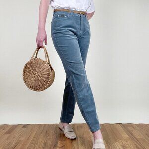 These stunning Ralph Lauren vintage corduroy pants offer a timeless high-waisted fit and a comfortable, full length straight leg, making them a versatile addition to any wardrobe. Crafted from soft, faded blue corduroy, they exude a relaxed yet chic aesthetic perfect for casual outings or elevated everyday wear. Pair them with your favorite tee or a cozy sweater for an effortlessly cool European look. Very comfortable alternative to denim jeans