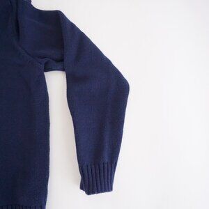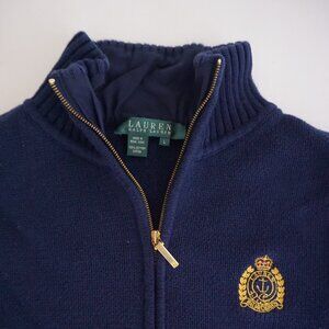 Vintage Ralph Lauren Navy Zip Cotton Sweater Preppy Collegiate Crest Knit L