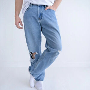 Crafted with precision, these blue distressed jeans reflect the rugged yet laid-back style synonymous with Polo Jeans Company. The relaxed fit ensures comfort while maintaining a fashionable look. Whether you're aiming for a casual ensemble or a vintage-inspired outfit, these jeans are a versatile choice.