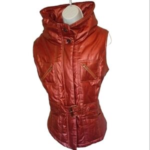Cripple Creek Ranchwear metallic copper high collar belted padded puffer vest in size XL.