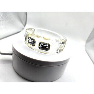 Vintage Rare Clear Lucite Cuff Bracelet Faceted Glass Stones Magnetic Clasp Mod