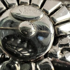 Vintage Rare Early Sherman Brooch Earrings Dome Signed Blue Rhinestones