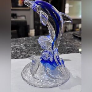 🐬This rare vintage dolphin figurine is a gorgeous hand blown crystal dolphin with an incredible cobalt blue streak throughout the piece. This Vintage Art Glass Piece is a definite gift for that dolphin lover in your life or a great conversation piece