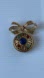 The green and blue stones test as semi precious gemstones. My guess is middle stone blue Lapis Lazuli and smaller side stones green Aventurine. The red stones test as glass.