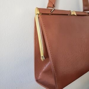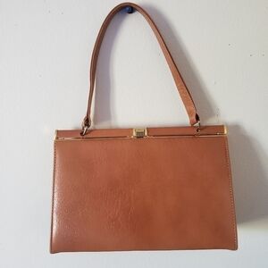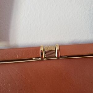 Vintage freedex leather purse in tan with gold tone hardware. Sign of wear on handle visible in pictures.