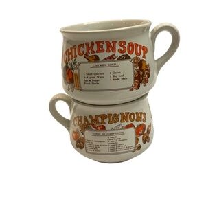 Chicken Soup and Mushroom soup mugs/bowls. There is a production error on one side of the mushroom soup recipe (see last photo).