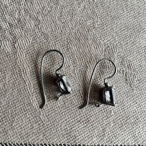 Vintage Rectangle Silver Earrings with Crystal Accents Formal Jewelry